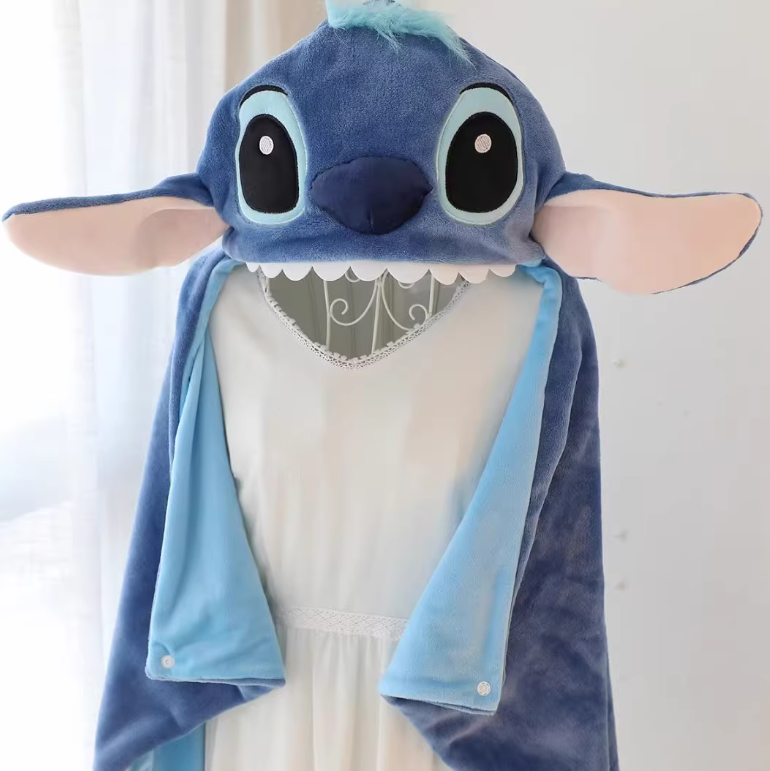 Urocza, mięciutka bluza-ponczo z motywem kultowego Sticha to idealne połączenie kocyka, przebrania i przytulanki! Doskonała na chłodniejsze dni, wieczory z bajką lub jako zabawny dodatek do codziennej stylizacji.