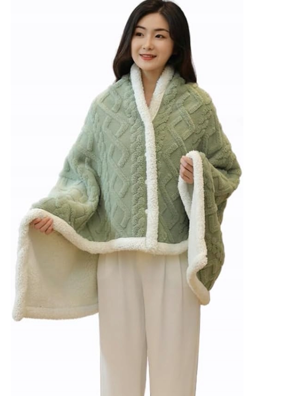 Wybierz nasz ciepły koc ponczo w kolorze zielonym i ciesz się wyjątkowym komfortem oraz stylowym wyglądem przez cały sezon. Idealny na prezent dla bliskich lub jako luksusowy dodatek do własnego użytku. Odkryj nowy wymiar komfortu z naszym produktem, który łączy elegancję z codzienną funkcjonalnością.