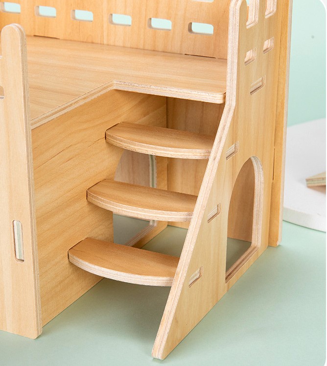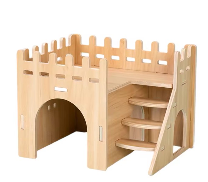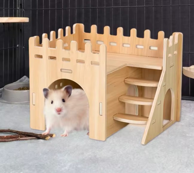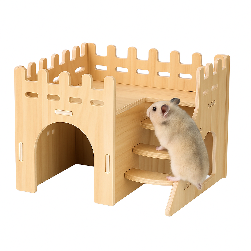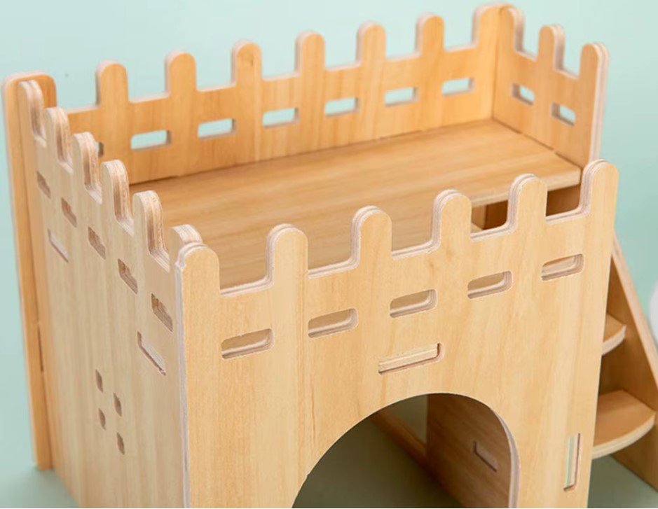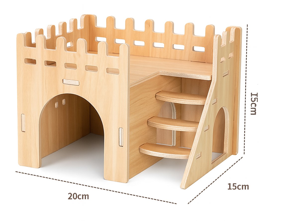 Uroczy drewniany domek w kształcie zamku to idealne miejsce do zabawy, wspinania i odpoczynku dla Twojego chomika lub myszy. Wykonany z naturalnego drewna – bezpieczny, trwały i pięknie prezentuje się w klatce.