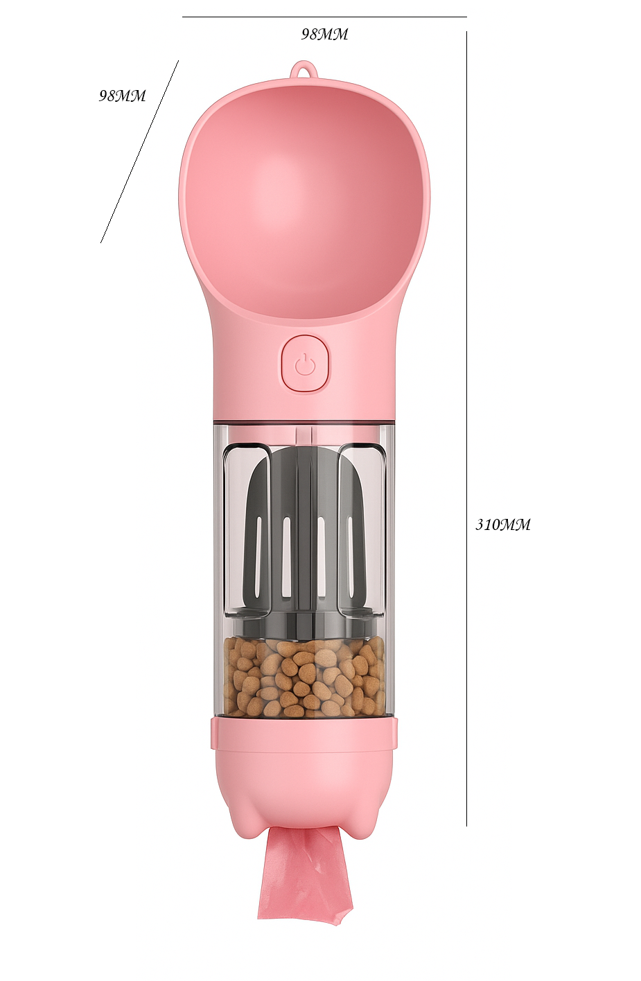 Dzięki kompaktowym wymiarom i paskowi na rękę bidon łatwo zmieści się w plecaku. Wystarczy nacisnąć przycisk, a woda napełni miskę – pies może od razu pić, bez potrzeby używania dodatkowych naczyń. Woreczki i smaczki na wyciągnięcie rączki.!