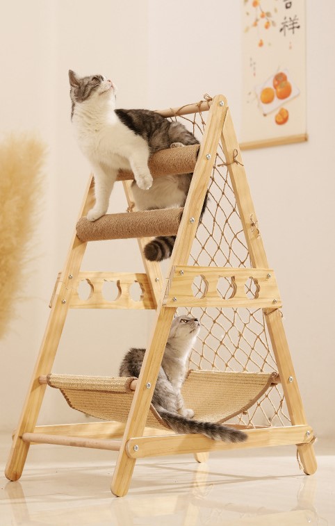 Drabinka wspinaczkowa dla kota z drapakiem i hamakiem – idealne miejsce do zabawy i odpoczynku!