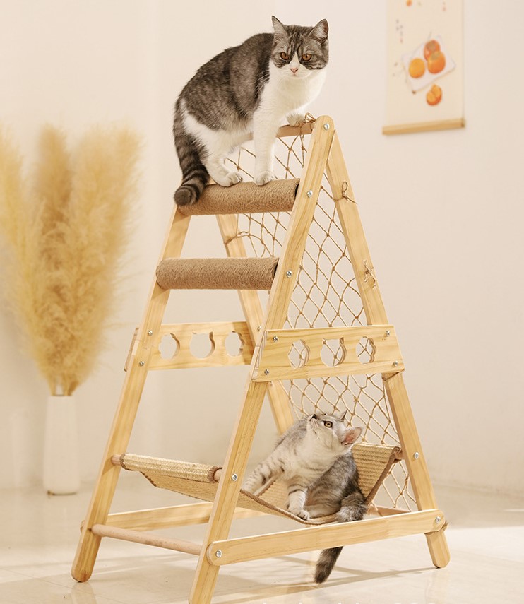 Drabinka wspinaczkowa dla kota z drapakiem i hamakiem – idealne miejsce do zabawy i odpoczynku!