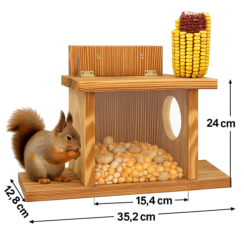 Stwórz przyjazne miejsce dla dzikiej przyrody dzięki solidnemu karmnikowi z drewna, zaprojektowanemu specjalnie z myślą o wiewiórkach. Ten estetyczny i funkcjonalny karmnik zachwyci nie tylko zwierzęta, ale też domowników i gości.