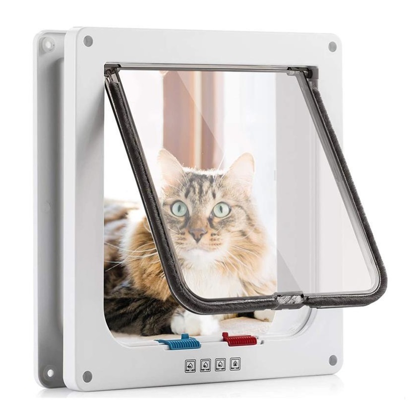 Biała klapa dla drzwi lub ścian Z szerokim przejściem: idealny dla dużych ras kotów 4 opcje zamykania: można całkowicie zamknąć, otworzyć w obu kierunkach lub w jednym z kierunków