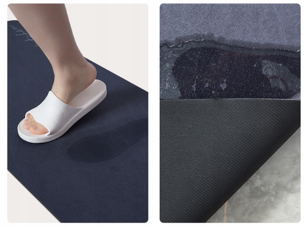 Dywanik nie przepuszcza wody ale skutecznie ją wchłania dzięki czemu nie roznosisz jej po całym domu, a to wszystko dzięki gumie antypoślizgowej pod spodem dywanu  !