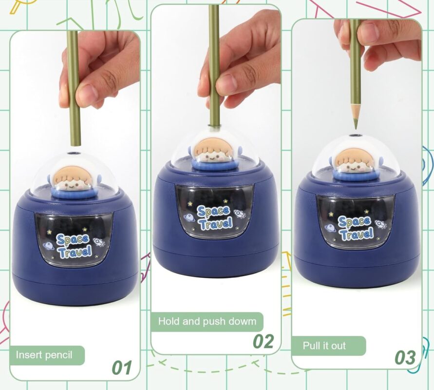 Praktyczna elektryczna temperówka to niezastąpione narzędzie zarówno w szkole, biurze, jak i w domu. Dzięki kompaktowym wymiarom 9,6 x 8,3 cm z łatwością zmieści się na każdym biurku, a jej nowoczesny design sprawia, że pasuje do każdego wnętrza.