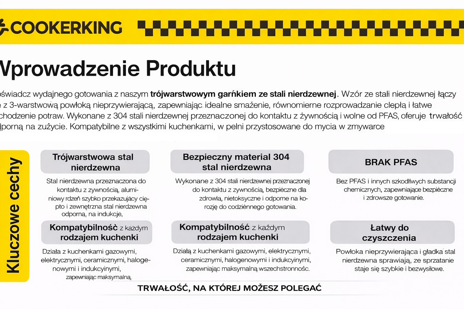• Łatwe czyszczenie – gładkie, polerowane wnętrze