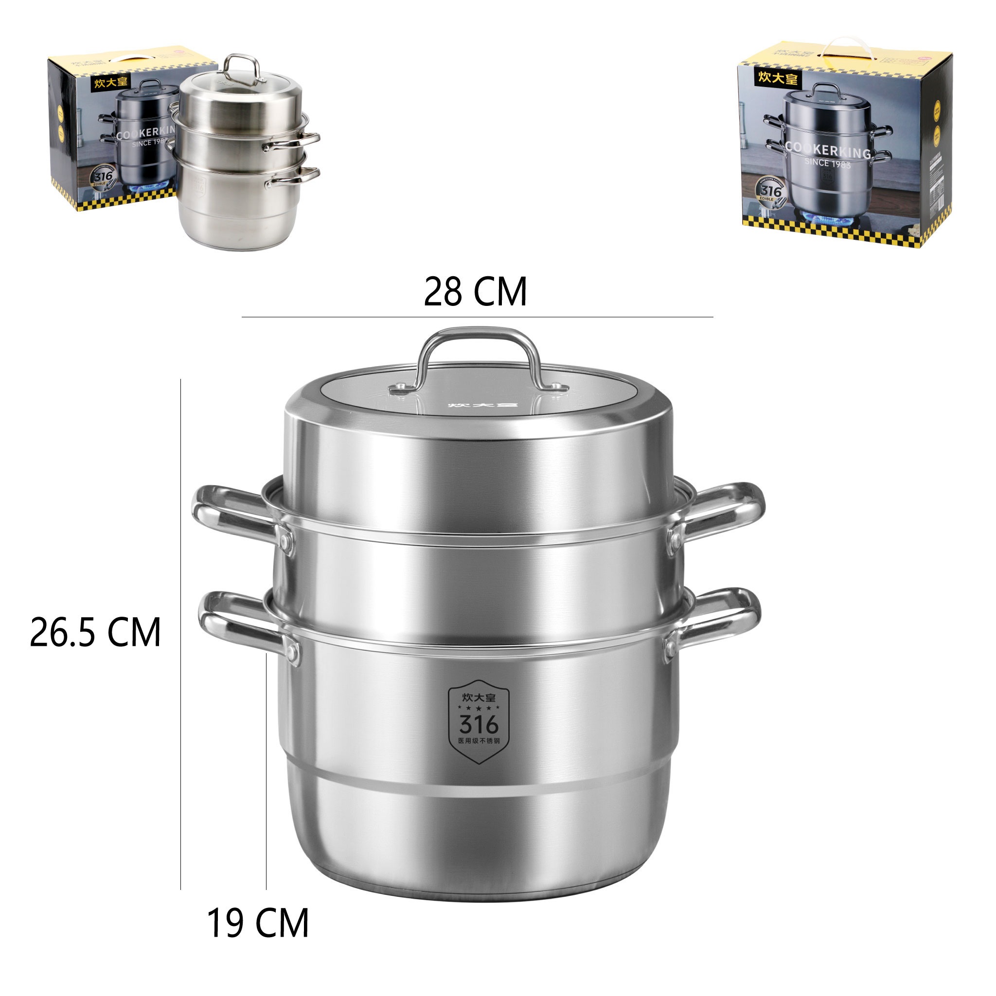• Wysokość dolnego garnka: 19 cm