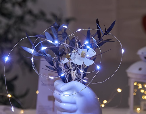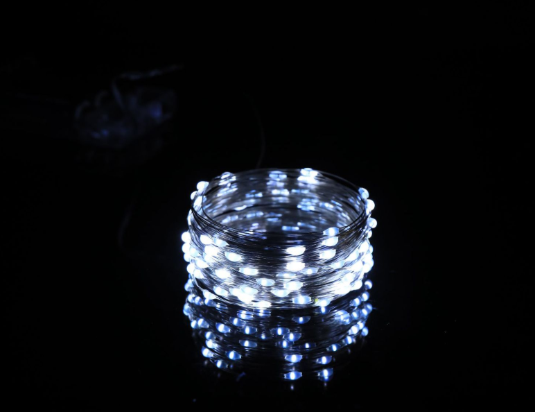 Białe zimne lampki LED o długości 8 metrów sprawdzą się w każdym wnętrzu. Dają przyjemne, jasne zimne światło w kilku warianach świetlnych(2 tryby stały i migający), a dzięki zasilaniu na baterie możesz ułożyć je dokładnie tam, gdzie chcesz – bez szukania gniazdka. Sprawdzą się na półce, w słoiku, na balkonie, choince czy przy dekoracji stołu.