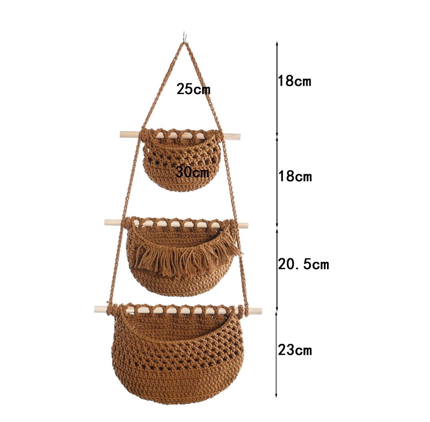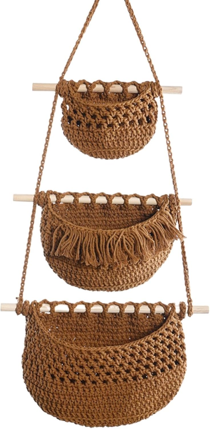 MAKRAMOWY WISZĄCY WIESZAK REGAŁ DO PRZECHOWYWANIA BOHO BRĄZOWY