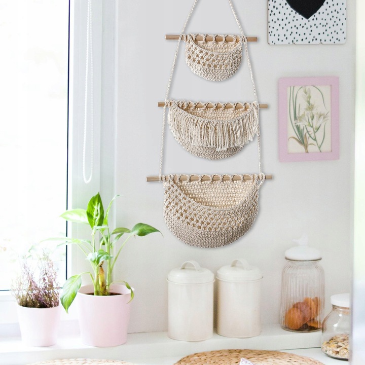 MAKRAMOWY WISZĄCY WIESZAK REGAŁ DO PRZECHOWYWANIA BOHO BEŻOWY 59,90 zł 53,91 zł