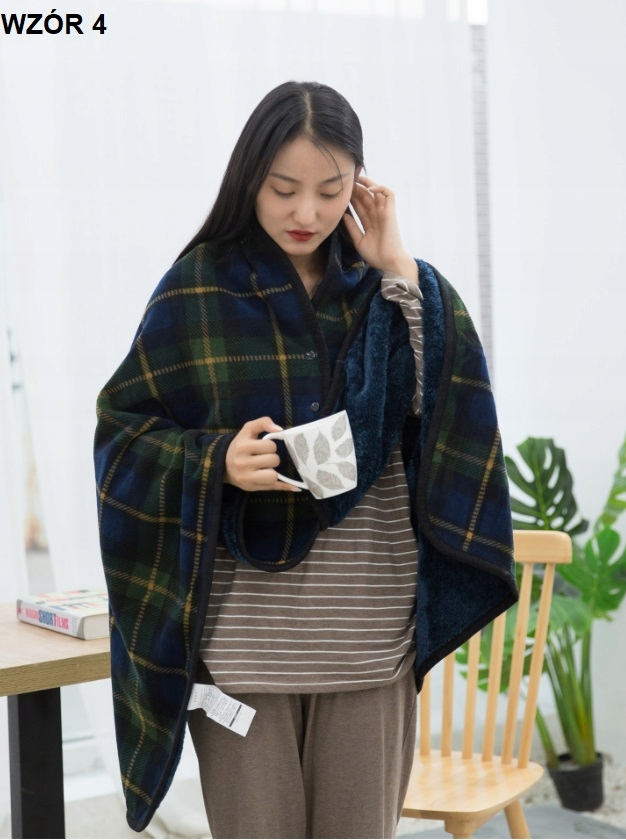 MIEKKI CIEPŁY KOC PONCZO ZAPINANY POLAROWY