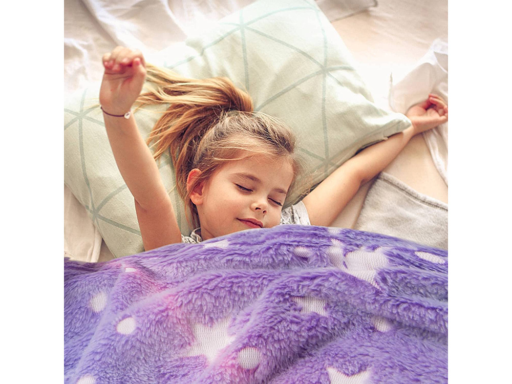 Koc świeci w ciemności – wzory ładują się pod wpływem światła dziennego lub sztucznego, a następnie delikatnie rozświetlają pomieszczenie. To idealne rozwiązanie dla dzieci, które boją się zasypiać w ciemności, a także ciekawy element dekoracyjny dla każdego wnętrza.