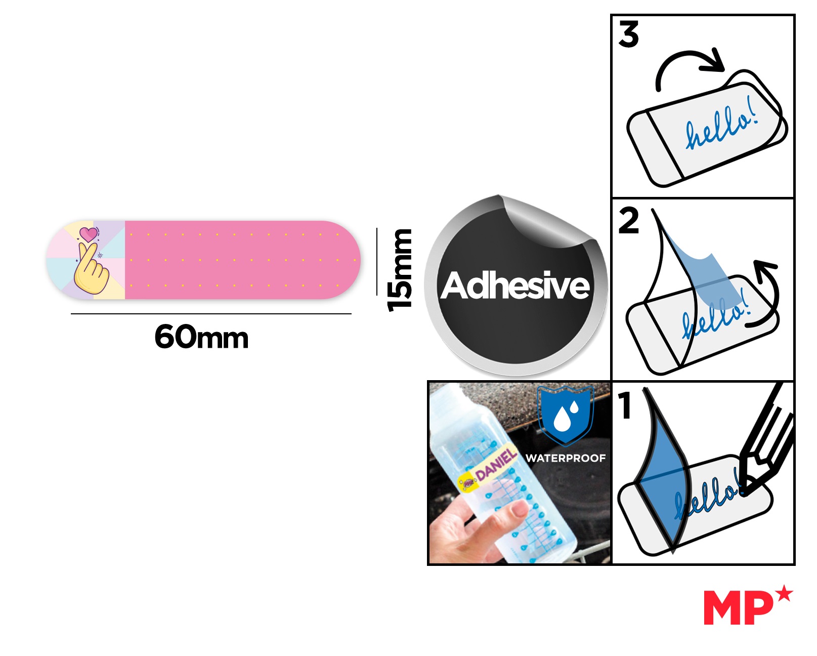 NAKLEJKI IMIENNE SAMOPRZYLEPNE WODOODPORNE 6×1,5cm