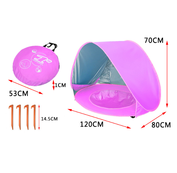 Pokrycie namiotu chroni przed niespodziewanym deszczem, a daszek zapewnia cień i osłonę przed słońcem (UV).