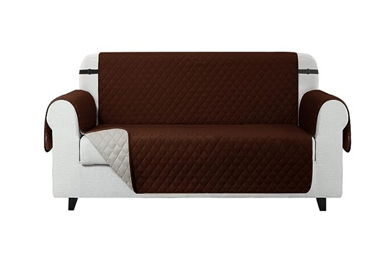 Narzuta ma miękką, pikowaną powierzchnię i dobrze układa się na meblu. Materiał jest przyjemny w dotyku, a jednocześnie wytrzymały — nie przesuwa się łatwo i nie roluje się na brzegach. Brązowy kolor pasuje do większości wnętrz i maskuje drobne zabrudzenia.