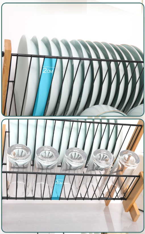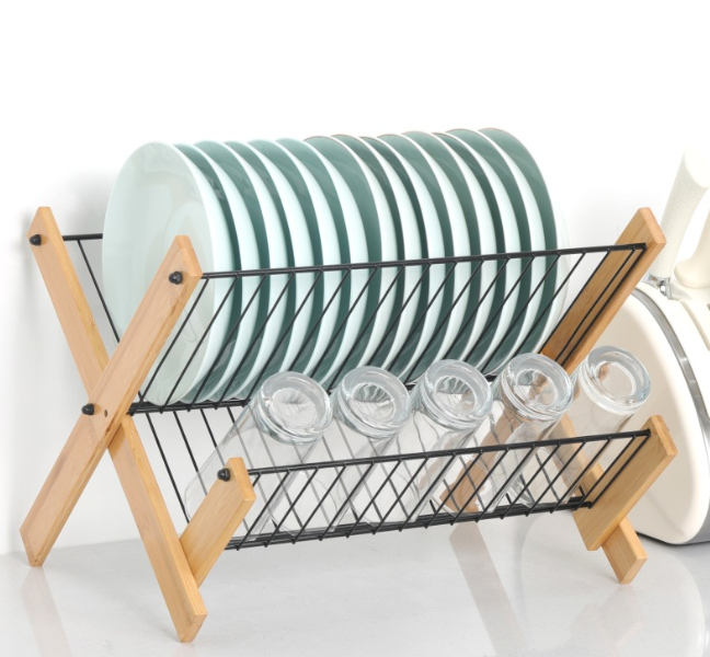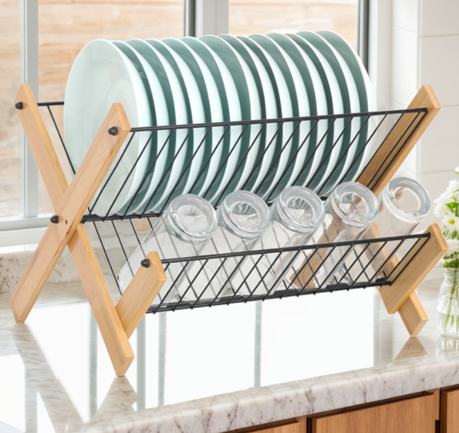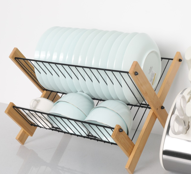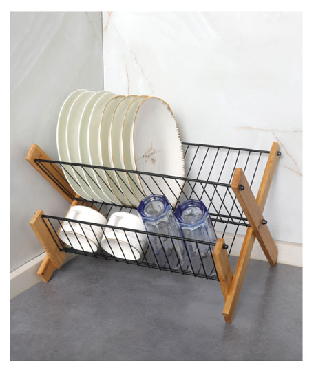 Funkcjonalny ociekacz kuchenny z bambusową konstrukcją i metalowymi półkami. Zajmuje mało miejsca, a jednocześnie pozwala wygodnie suszyć talerze, kubki i szklanki. Prosty design dobrze wygląda w nowoczesnych i klasycznych kuchniach.