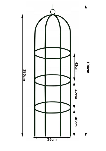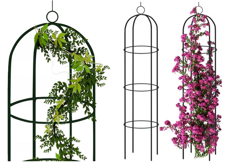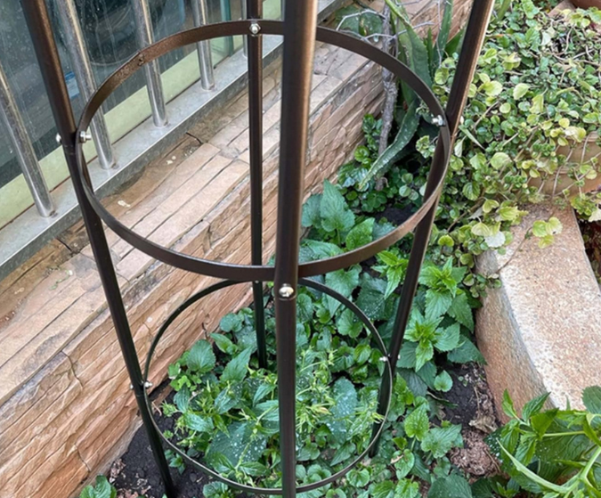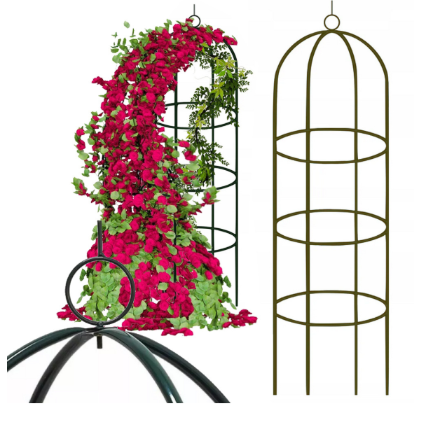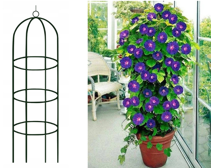Konstrukcja pozwala roślinom swobodnie oplatać ramę, dzięki czemu łodygi nie łamią się i rosną w kontrolowany sposób. Świetna dla powojników, róż, bluszczu czy groszku pachnącego.