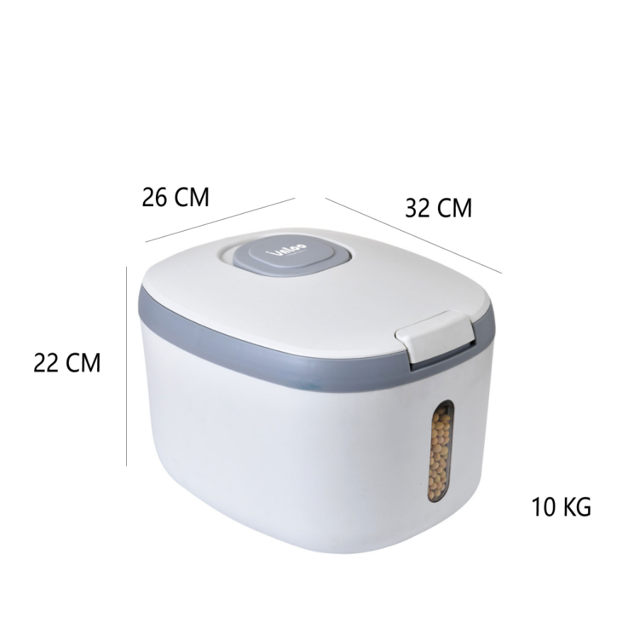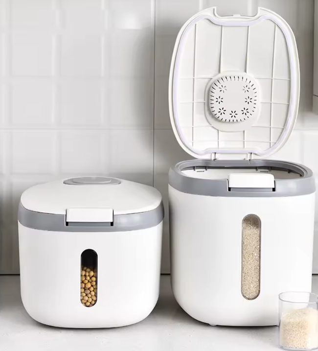Praktyczny pojemnik kuchenny, który pomaga utrzymać porządek i świeżość produktów sypkich. Sprawdzi się idealnie do ryżu, ale bez problemu możesz przechowywać w nim także kaszę, makarony, płatki czy rośliny strączkowe. Neutralna, szaro biała kolorystyka pasuje do nowoczesnych i klasycznych wnętrz.