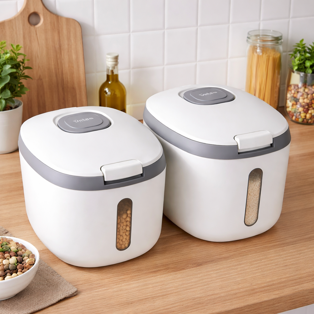 Dzięki kompaktowym wymiarom pojemnik łatwo zmieści się w szafce, na blacie lub w spiżarni. To proste rozwiązanie, które ułatwia organizację kuchni i codzienne gotowanie.