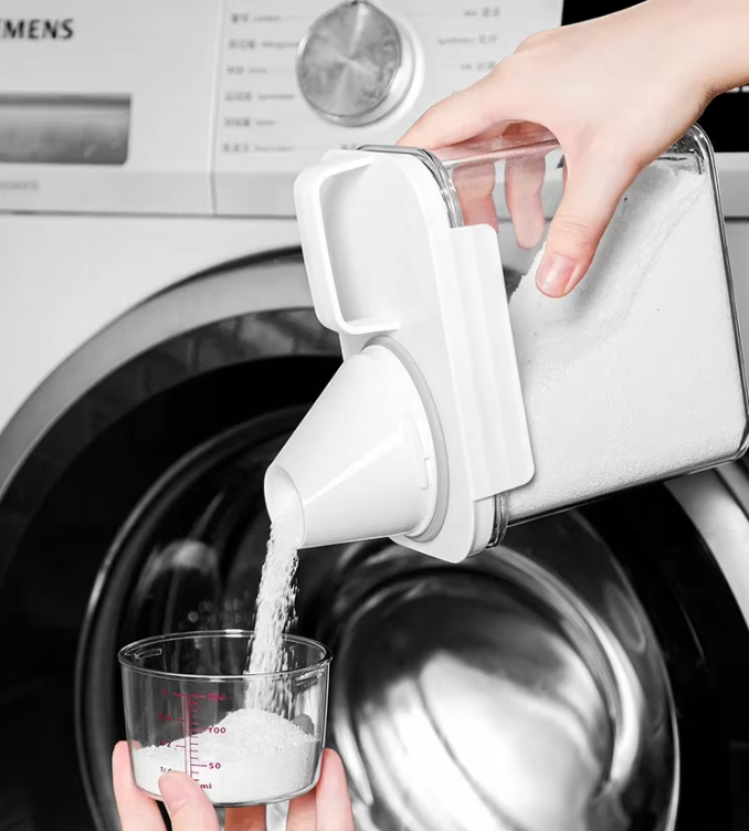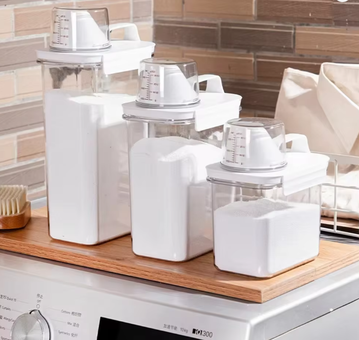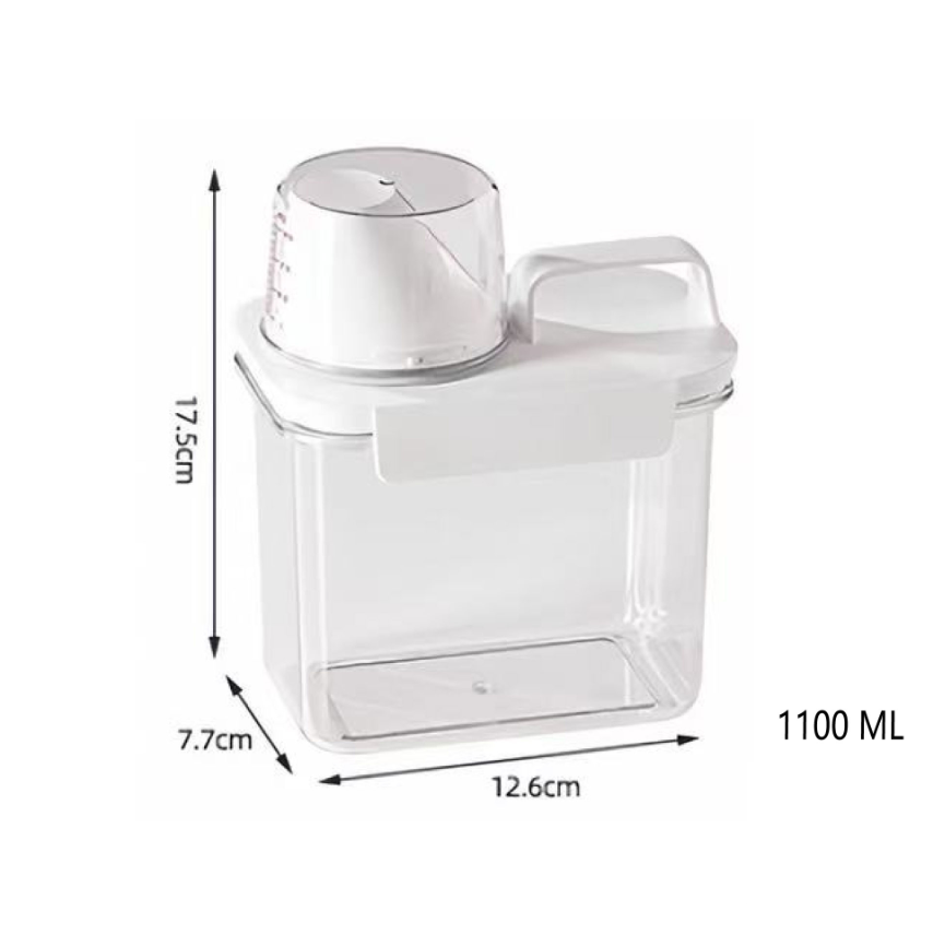 Praktyczny pojemnik do przechowywania produktów sypkich. Sprawdzi się w kuchni, pralni, spiżarni oraz wszędzie tam, gdzie liczy się porządek i wygoda dozowania.