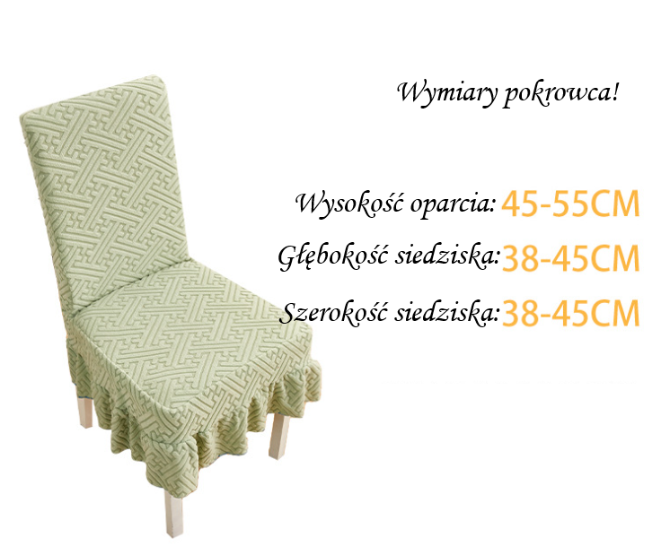 Odmień wygląd swoich krzeseł w kilka chwil dzięki eleganckiemu pokrowcowi na krzesło z falbanką. To doskonałe rozwiązanie dla osób ceniących sobie styl, wygodę i praktyczne dodatki do wnętrz. Pokrowiec został zaprojektowany z myślą o uniwersalnym dopasowaniu do większości standardowych krzeseł bez podłokietników by je chronić!.