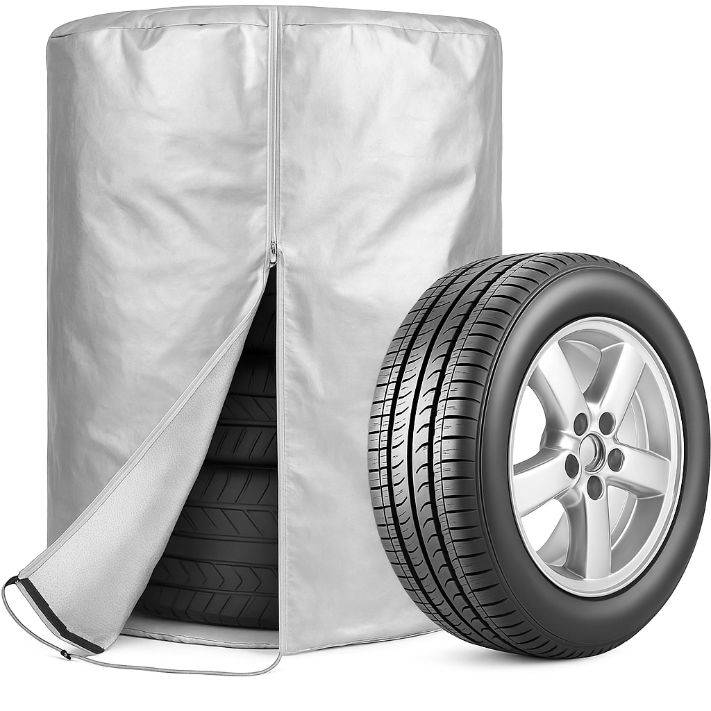 - Trwały materiał – gruba, odporna na uszkodzenia tkanina zabezpiecza opony przed brudem i wilgocią.