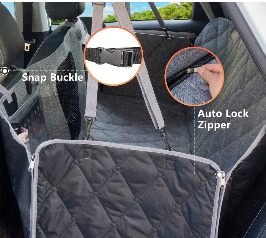 Pokrowiec na tylne siedzenie samochodu dla psa wodoodporny mata ochronna z kieszenią i siatką – CZARNY