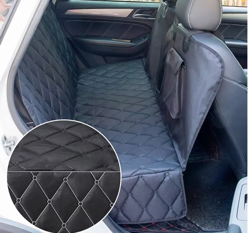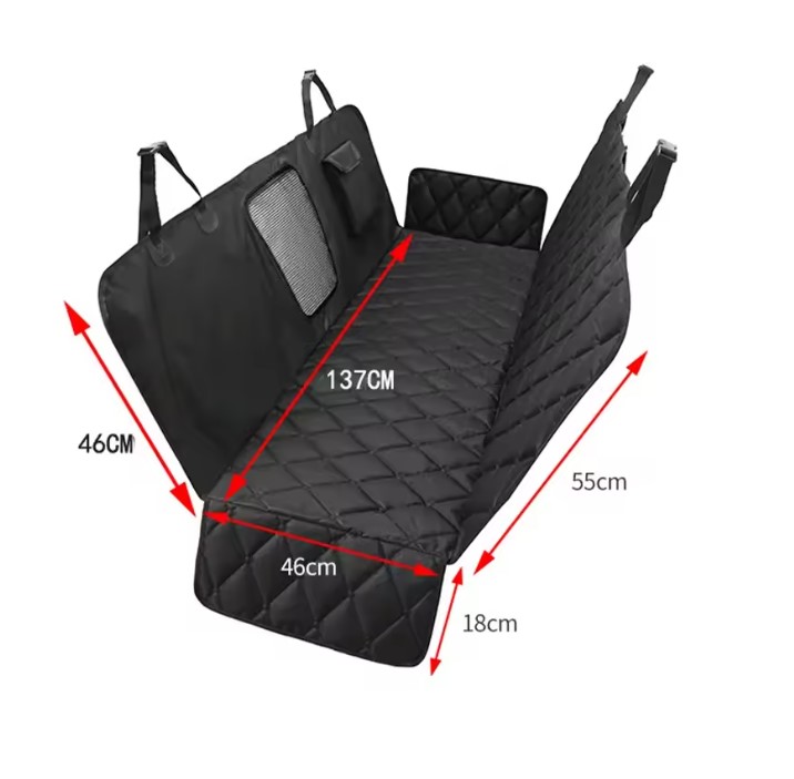 Pokrowiec na tylne siedzenie samochodu dla psa wodoodporny mata ochronna z kieszenią i siatką – CZARNY