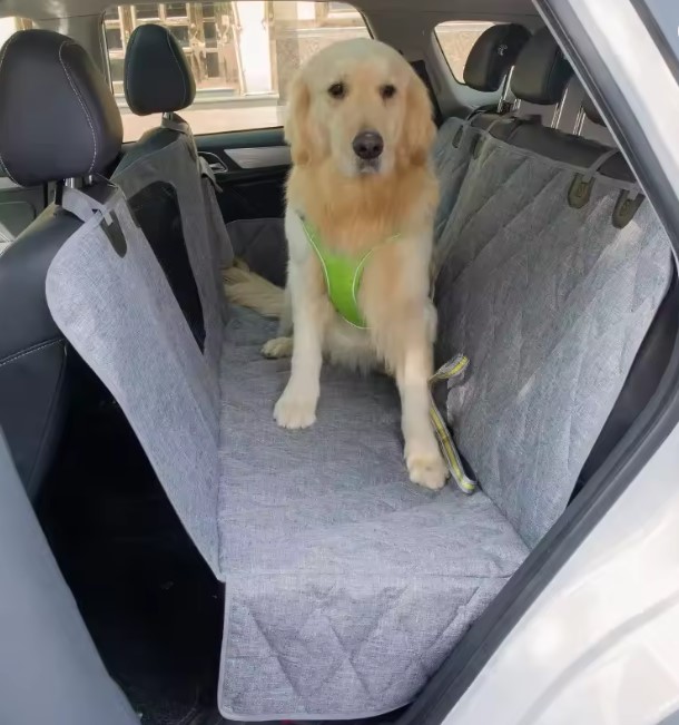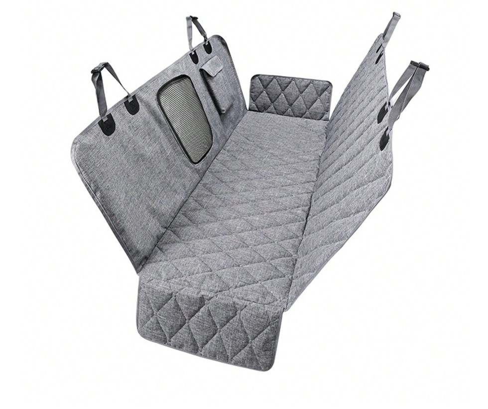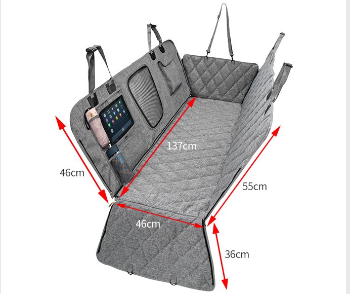Pokrowiec na tylne siedzenie samochodu dla psa wodoodporny mata ochronna z kieszenią i siatką – szary