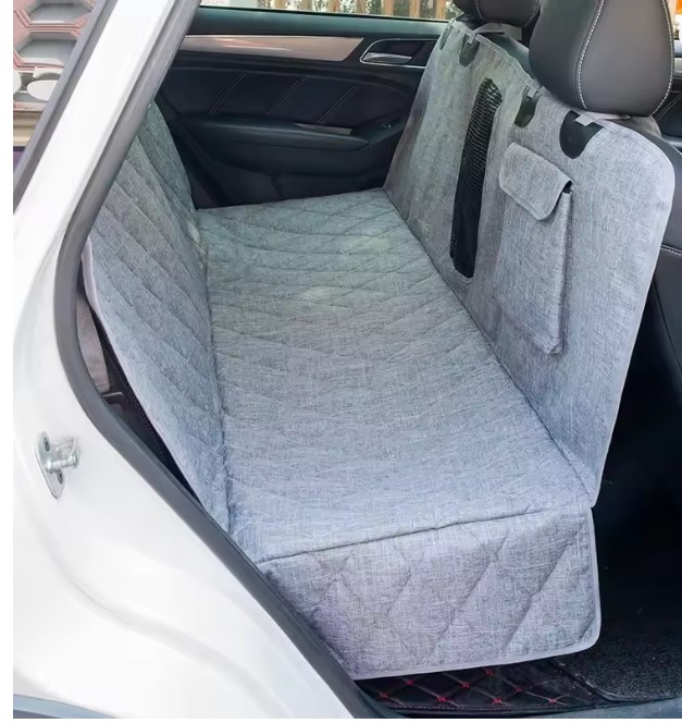 Pokrowiec na tylne siedzenie samochodu dla psa wodoodporny mata ochronna z kieszenią i siatką – szary