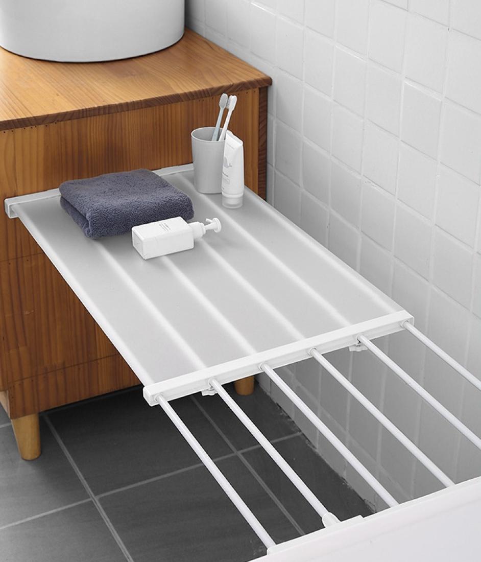 Teleskopowa półka do przechowywania jest bardzo wygodna w codziennym życiu, rozciągają się w zakresie 50-80 cm. Taka półka pozwala maksymalnie wykorzystać wolna przestań w Twoim mieszkaniu.