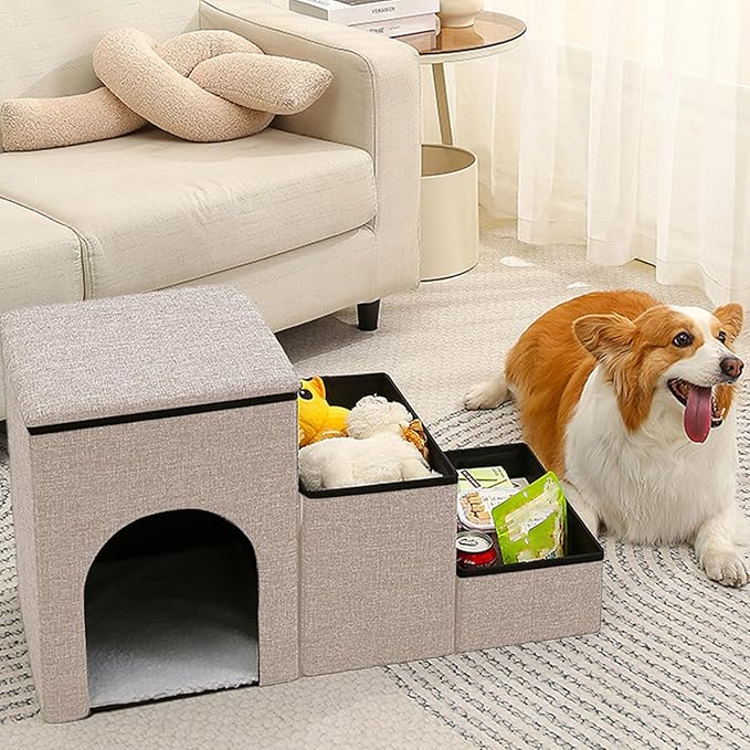 Schody wyglądają bardzo elegancko ,a co najważniejsze każdy schodek posiada pod przykrywką dodatkowy schowek w którym można schować nie tylko zabawki ale wszystkie akcesoria naszego czworonoga np. smycze, szczotki, kocyki itd !
