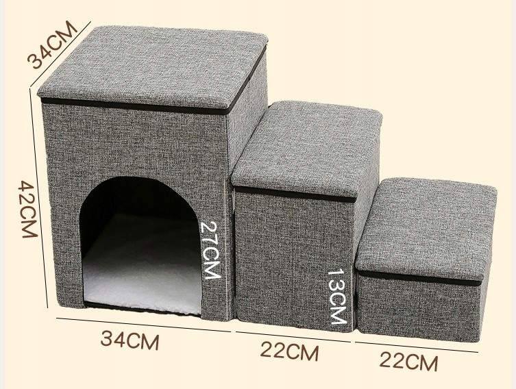 Schody wyglądają bardzo elegancko ,a co najważniejsze każdy schodek posiada pod przykrywką dodatkowy schowek w którym można schować nie tylko zabawki ale wszystkie akcesoria naszego czworonoga np. smycze, szczotki, kocyki itd !