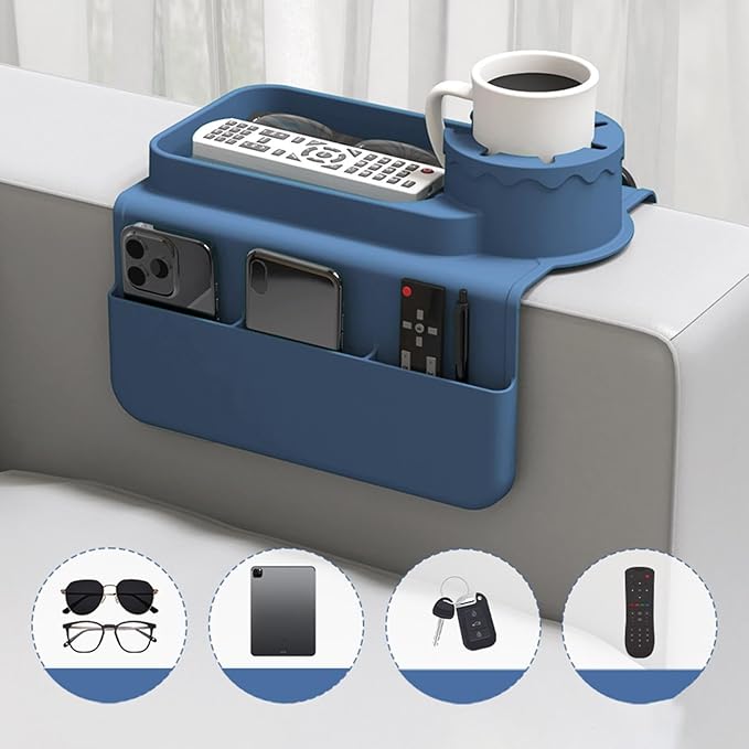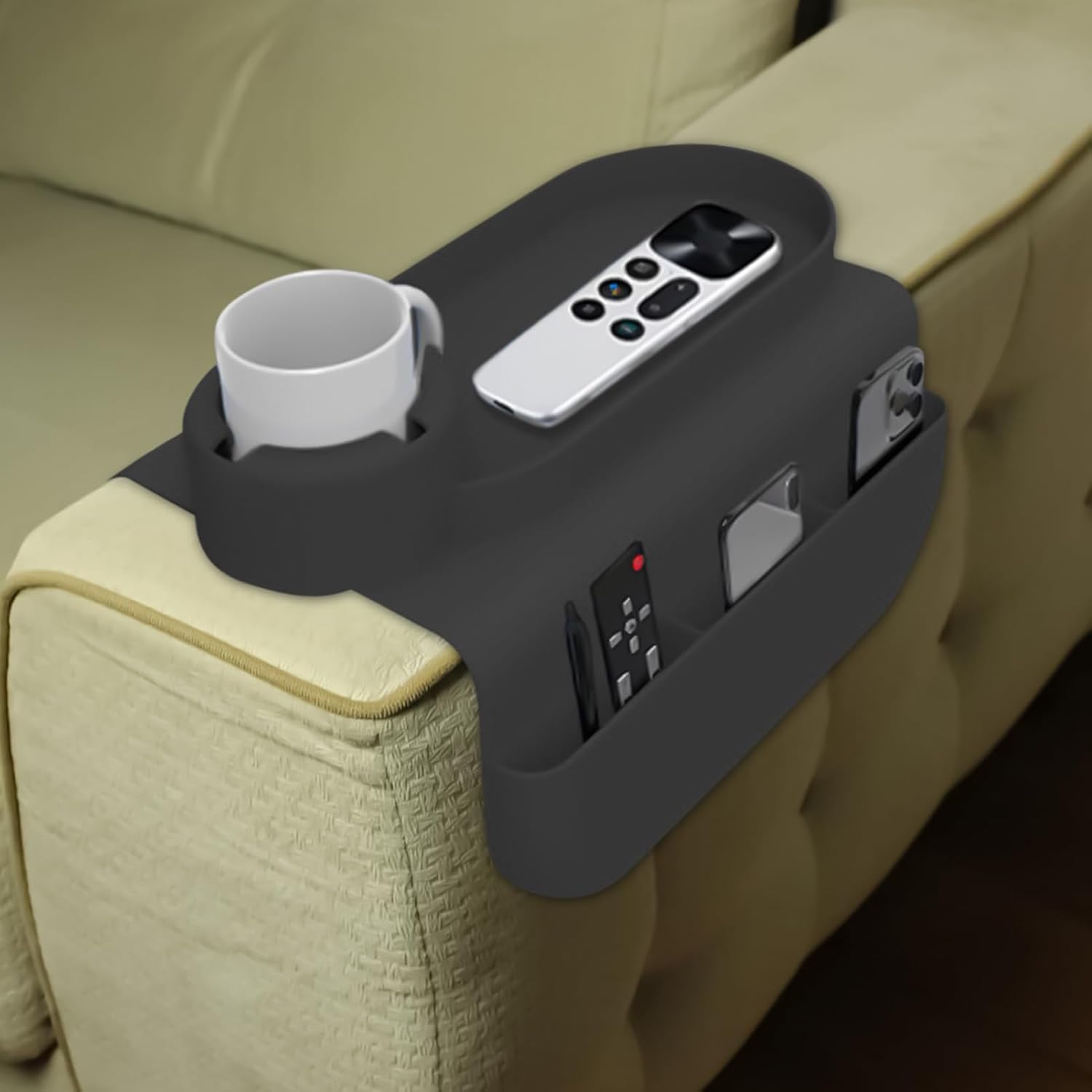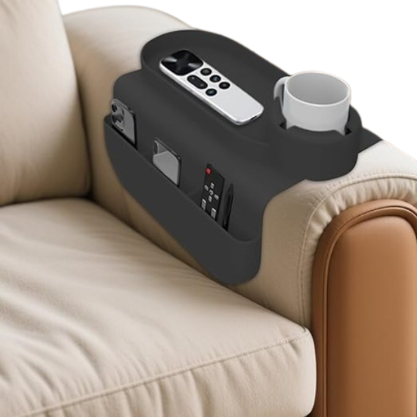 Przedstawiamy funkcjonalny uchwyt silikonowy, który idealnie dopasowuje się do podłokietnika sofy lub fotela, zapewniając stabilne miejsce na Twój ulubiony napój – bez ryzyka rozlania!