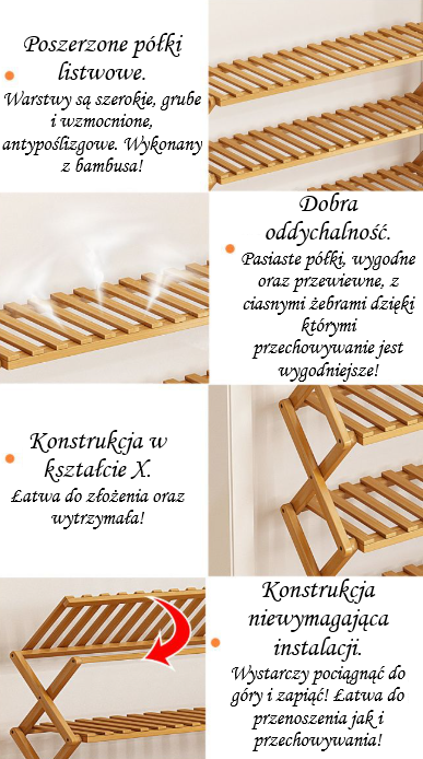 - Liczba poziomów: 2 – pomieści do 6 par butów