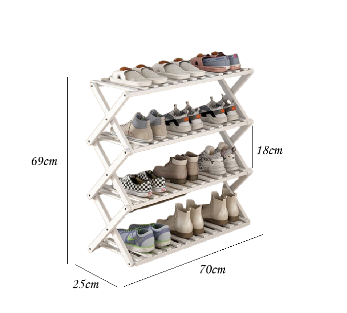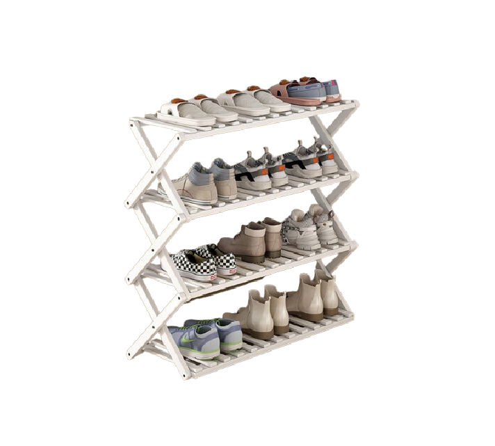 Stojak Bambusowy na Buty Składany – 69x25x70cm BIAŁY CZTEROPOZIOMOWY