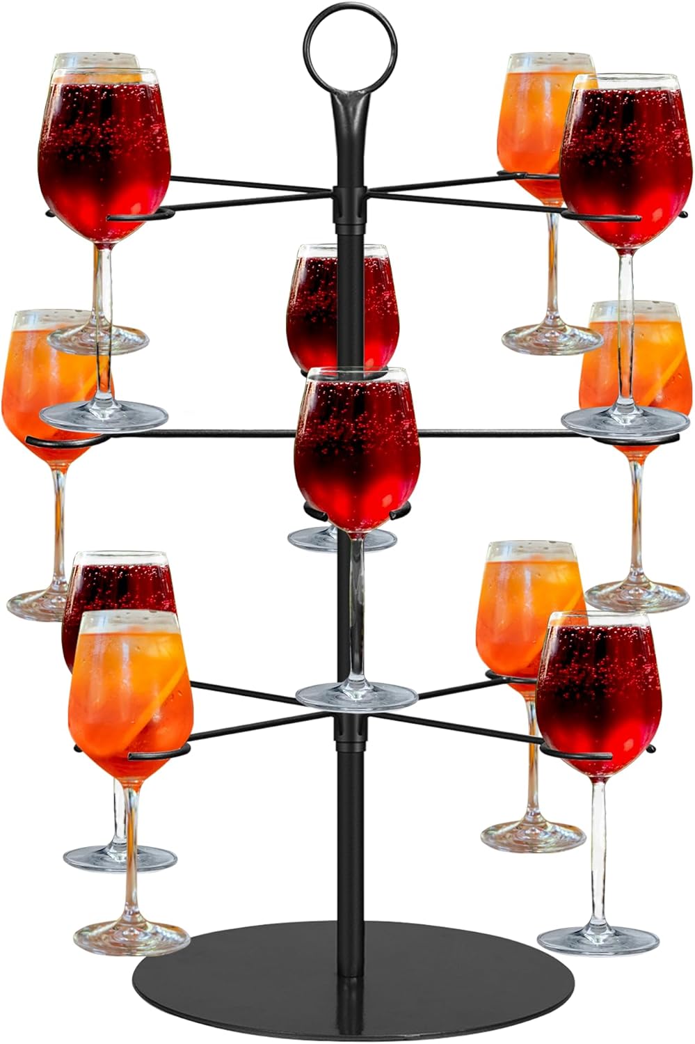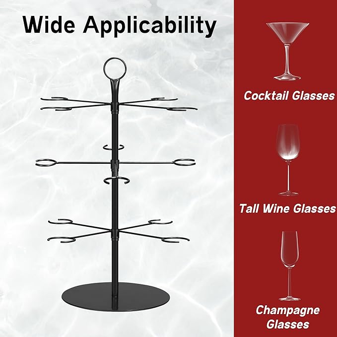 W zestawie znajduje się drzewko o wysokości 63 cm, stojak z trzema poziomami i może pomieścić do 12 kieliszków – idealny do łatwego ustawienia i zaprezentowania kieliszków koktajlowych. (Zawiera tylko stelaż, nie zawiera innych artykułów.