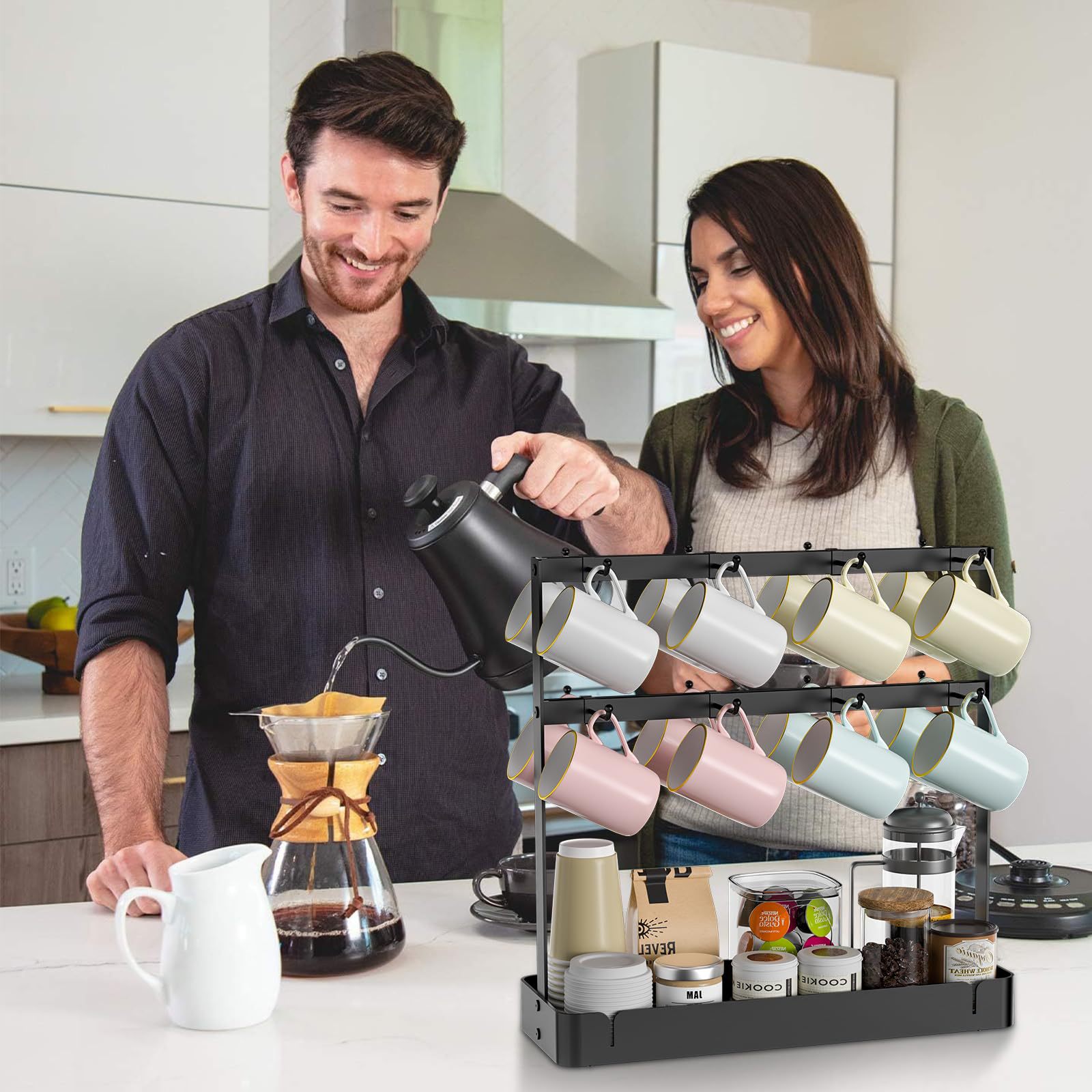 STOJAK NA KUBKI Z HACZYKAMI | ORGANIZER KUCHENNY | ELEGANCKI I FUNKCJONALNY