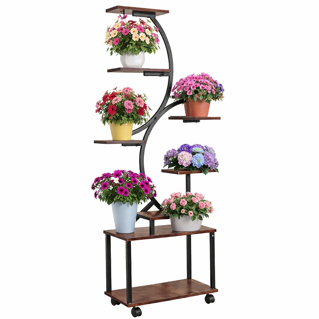 Strona główna » Sklep » STOJAK NA KWIATY METALOWO DREWNIANY NA KÓŁKACH 8 POZIOMÓW