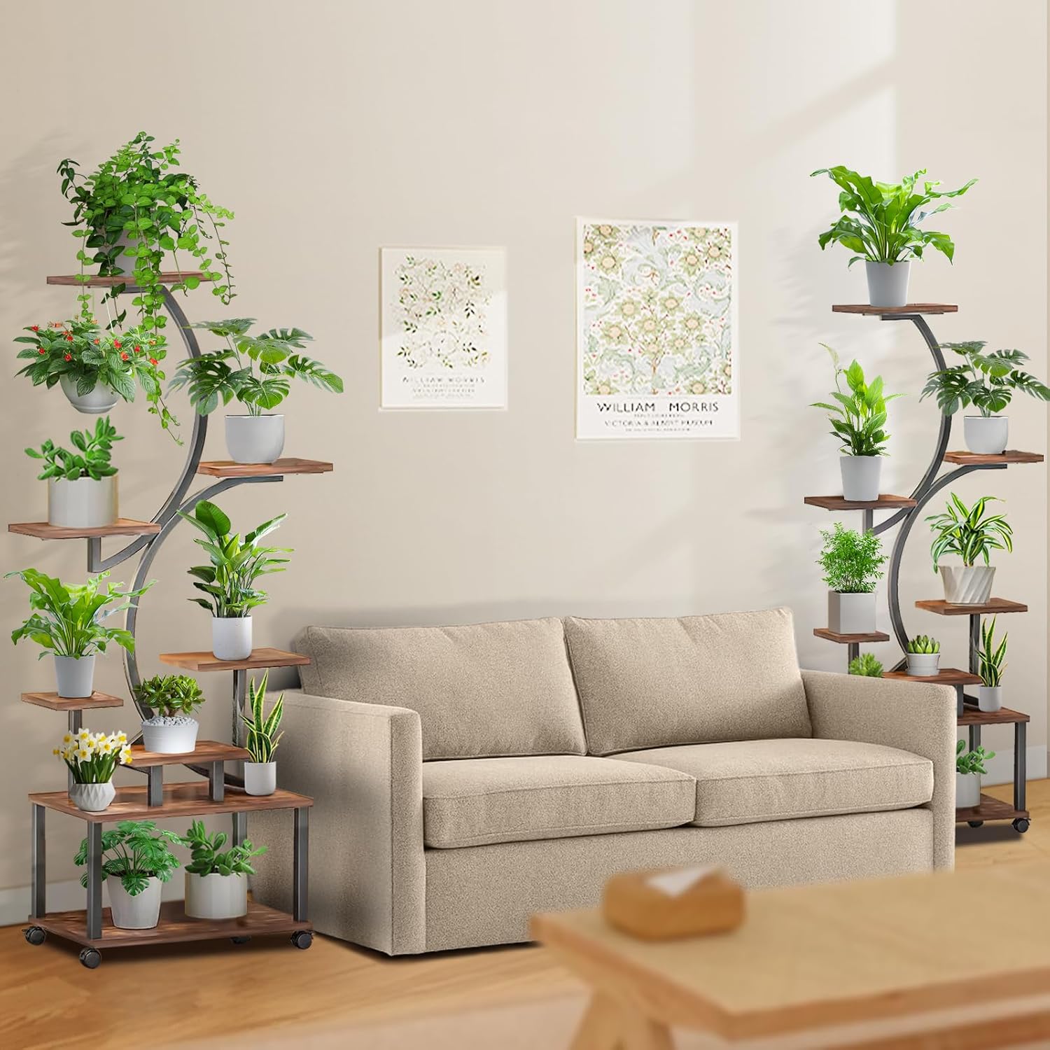 Nowoczesny stojak na rośliny do domu i ogrodu zimowego, który pozwala ustawić wiele kwiatów w pionie bez zajmowania dużej powierzchni podłogi. Konstrukcja w kształcie łuku sprawia, że rośliny są dobrze doświetlone i wyeksponowane, a całość wygląda lekko i elegancko.
