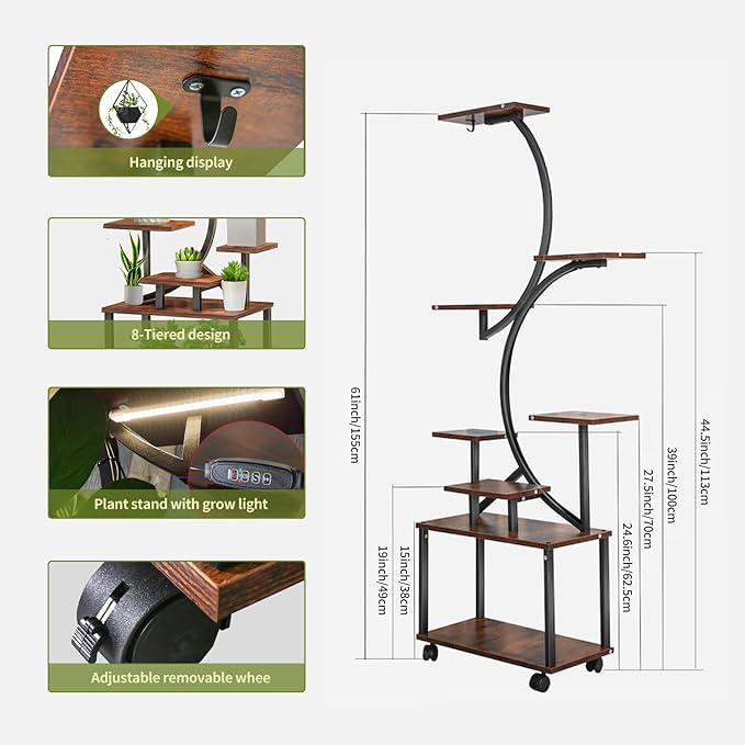 STOJAK NA KWIATY METALOWO DREWNIANY NA KÓŁKACH 8 POZIOMÓW LED 299,00 zł