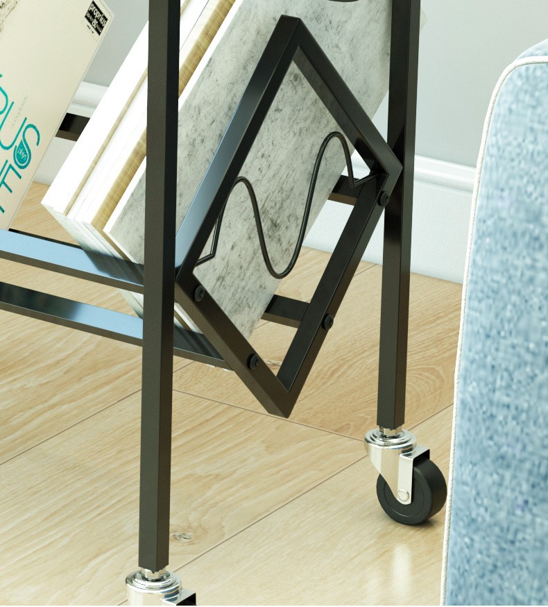 • 4 obrotowe kółka z blokadą pozwalają łatwo przemieszczać stolik po pomieszczeniu.