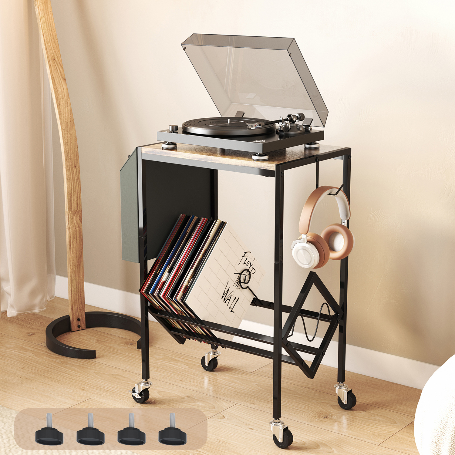 STOJAK STOLIK NA PŁYTY WINYLOWE + MIEJSCE NA GRAMOFON | MOBILNY ORGANIZER AUDIO