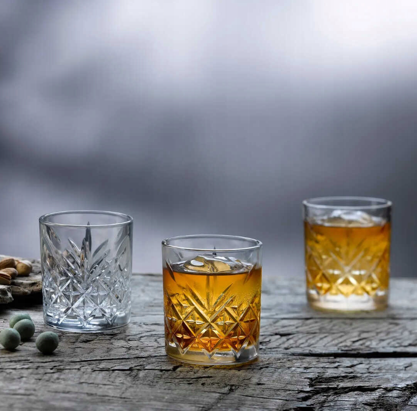Elegancki komplet szklanek wykonanych z wysokiej jakości szkła, idealny do serwowania whisky, drinków, soków czy wody. Klasyczny wzór z tłoczeniem nadaje im wyjątkowego charakteru, dzięki czemu sprawdzą się zarówno na co dzień, jak i podczas spotkań w gronie rodziny i znajomych.
