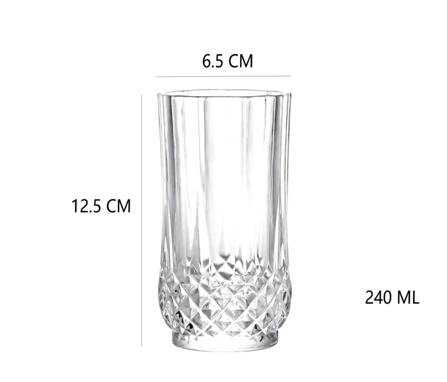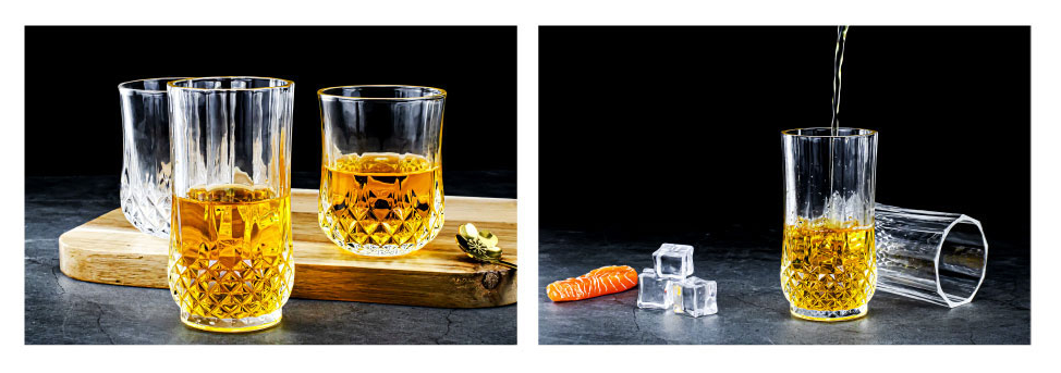 Stylowy komplet szklanek wykonanych z wysokiej jakości szkła, zdobionych eleganckim wzorem w dolnej części. Idealne do serwowania wody, whisky, drinków, soków czy koktajli. Ich kształt i dekoracyjne wykończenie sprawiają, że świetnie prezentują się zarówno w codziennym użytkowaniu, jak i podczas spotkań w gronie rodziny i znajomych.