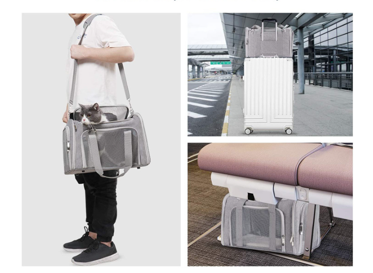 - Trzy wejścia (góra i boki) zapinane na zamki błyskawiczne – wygodne wkładanie i wyjmowanie zwierzęcia.