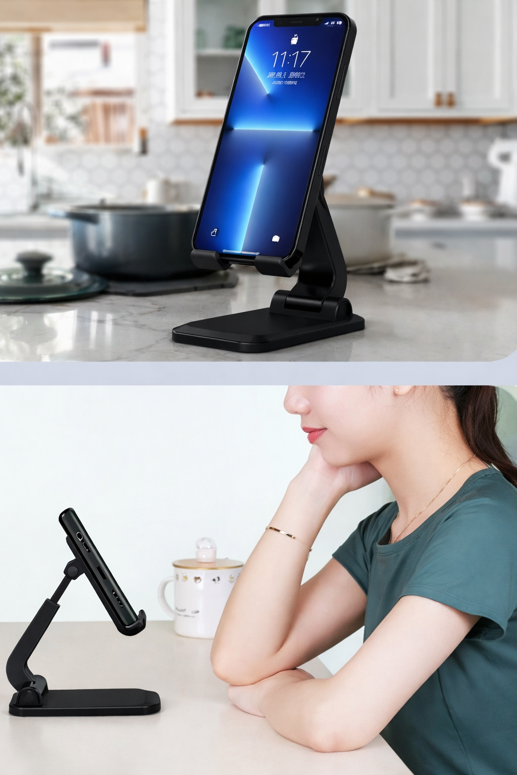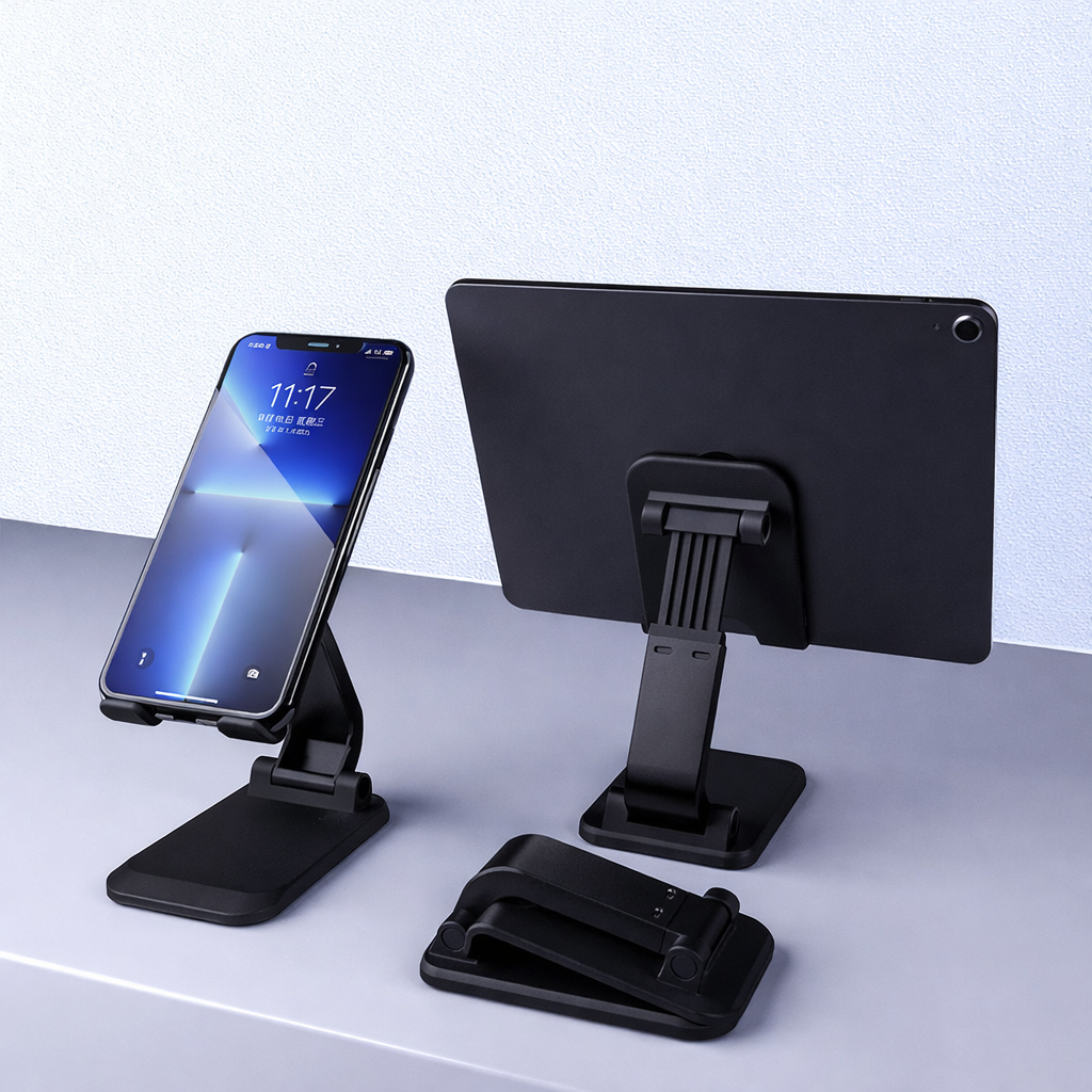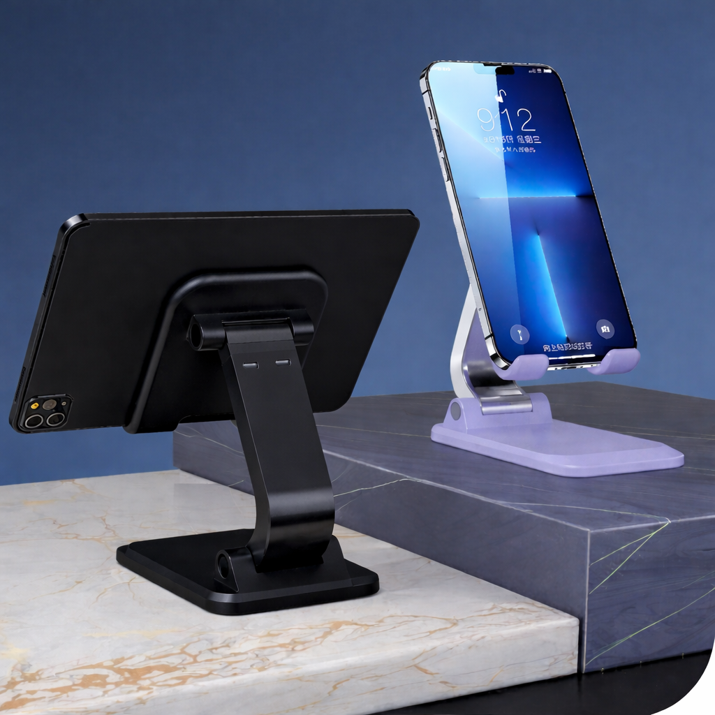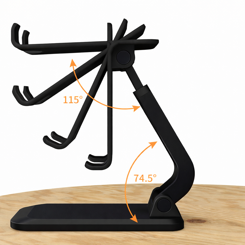 Zamontuj tablet lub telefon komórkowy na biurku, w pracy czy na ważnym spotkaniu na regulowanym i przenośnym uchwycie.