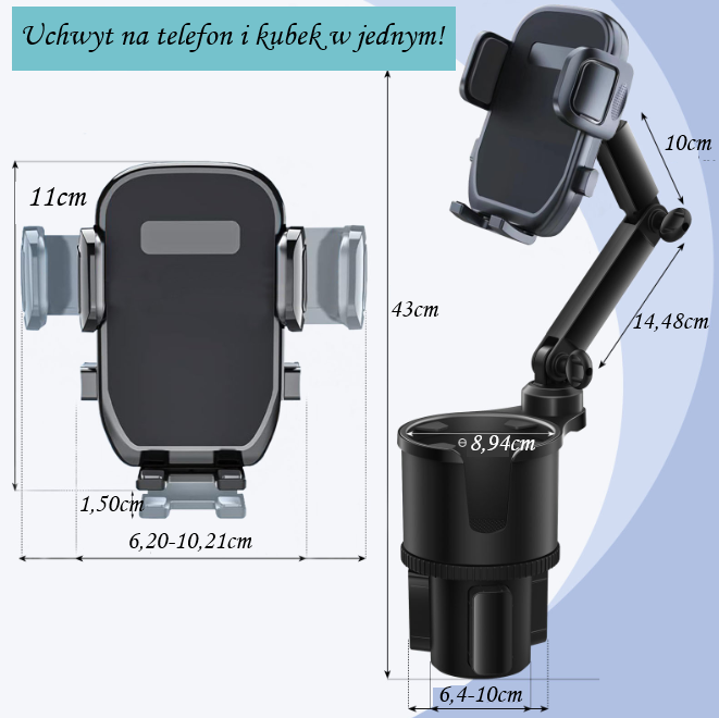 Uchwyt samochodowy na kubek i telefon 2w1