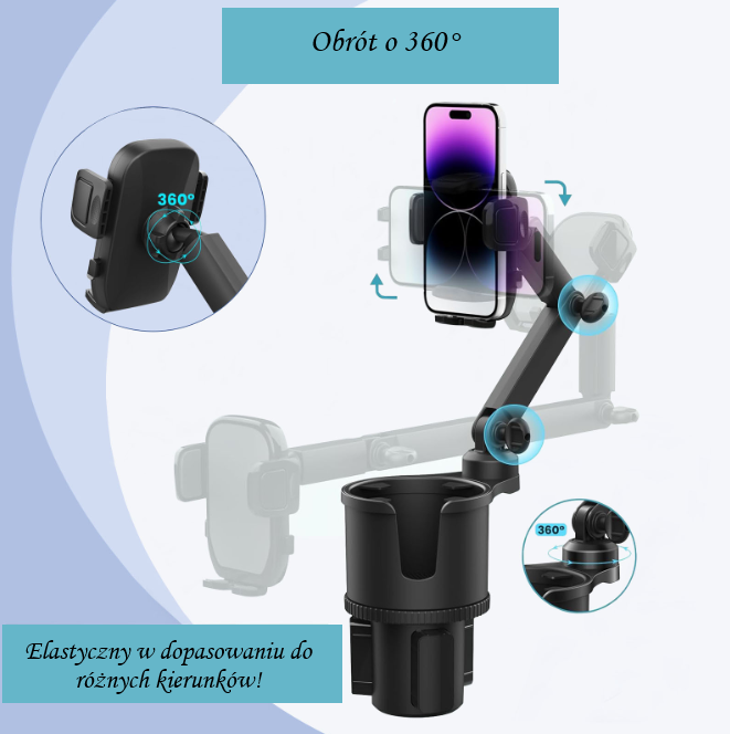 Praktyczny uchwyt samochodowy, który łączy funkcję stabilnego mocowania telefonu oraz miejsca na napój. Dzięki temu rozwiązaniu możesz bezpiecznie korzystać z nawigacji i mieć zawsze pod ręką kawę, butelkę wody czy kubek termiczny.